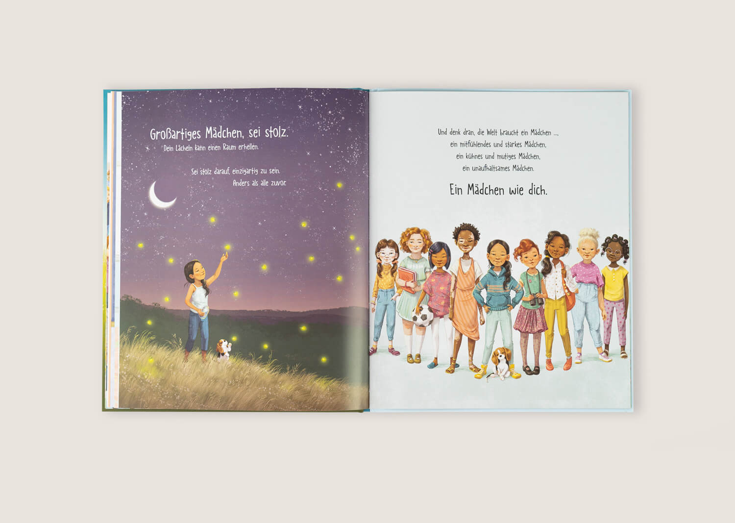 Noch immer bekommen Mädchen zu oft von der Gesellschaft vermittelt, sie sollten zurückhaltend und unscheinbar sein. „Ein Mädchen wie du“ motiviert sie, ihre Träume beherzt anzugehen und optimistisch ihren Weg zu gehen.