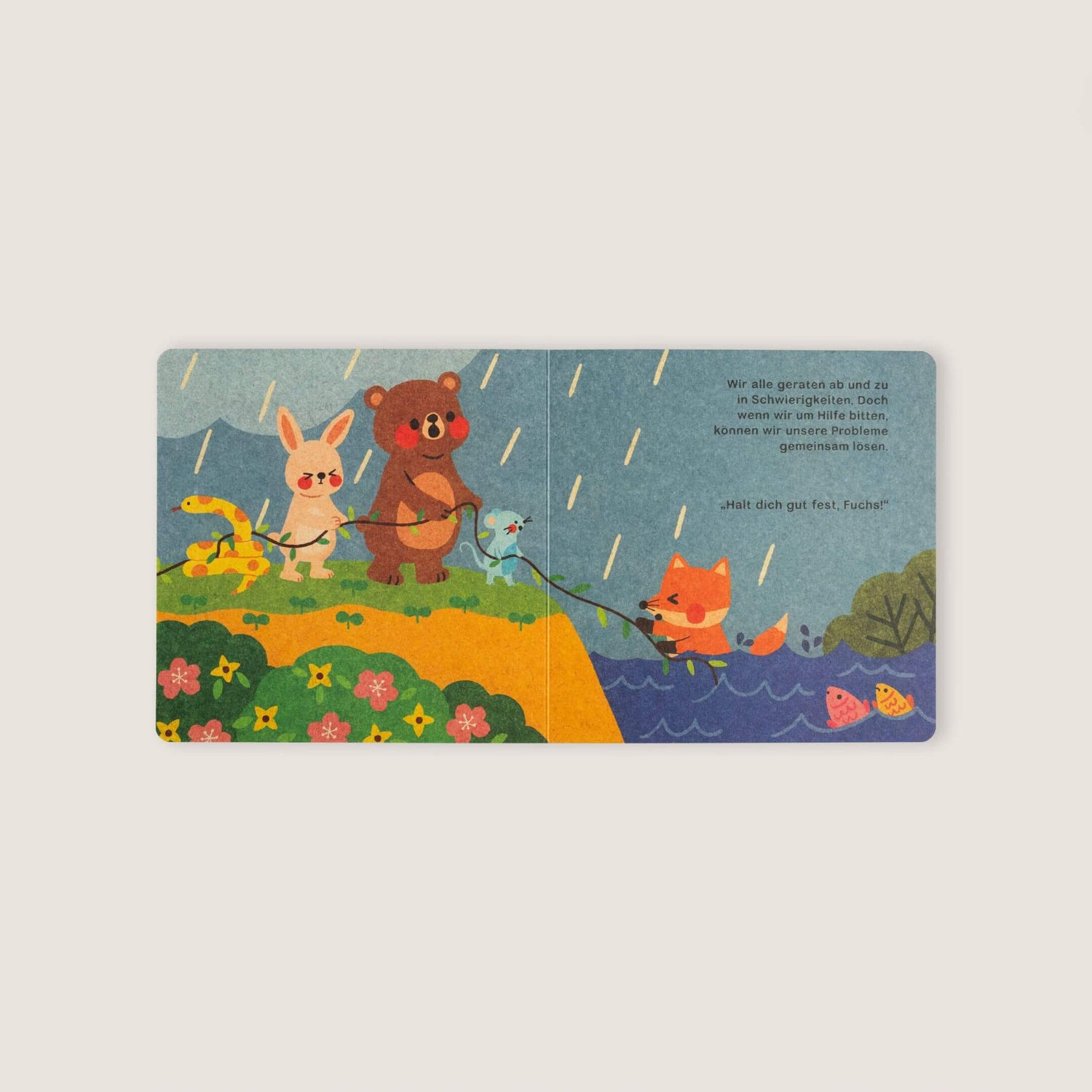 „Hilfe brauchen ist ok“ ist ein Bilderbuch, das schon kleinste Kinder anspricht: Die freundlichen Illustrationen und die stabilen Seiten machen dieses Buch perfekt für kleinste Kinder.