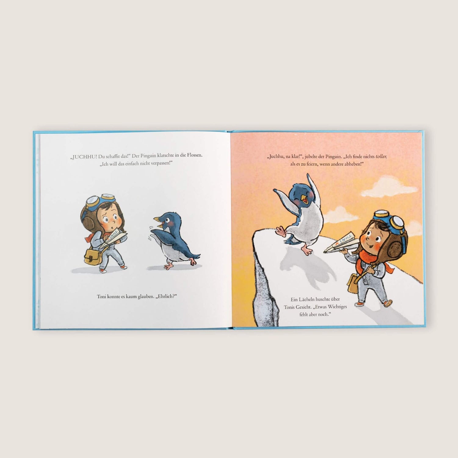 Eingängig erzählt und untermalt mit spannenden Tier-Illustrationen vermittelt Tonis Geschichte allen Kindern ab 3 Jahren, dass wir selbst am besten wissen, was unsere Träume zum Fliegen brauchen.