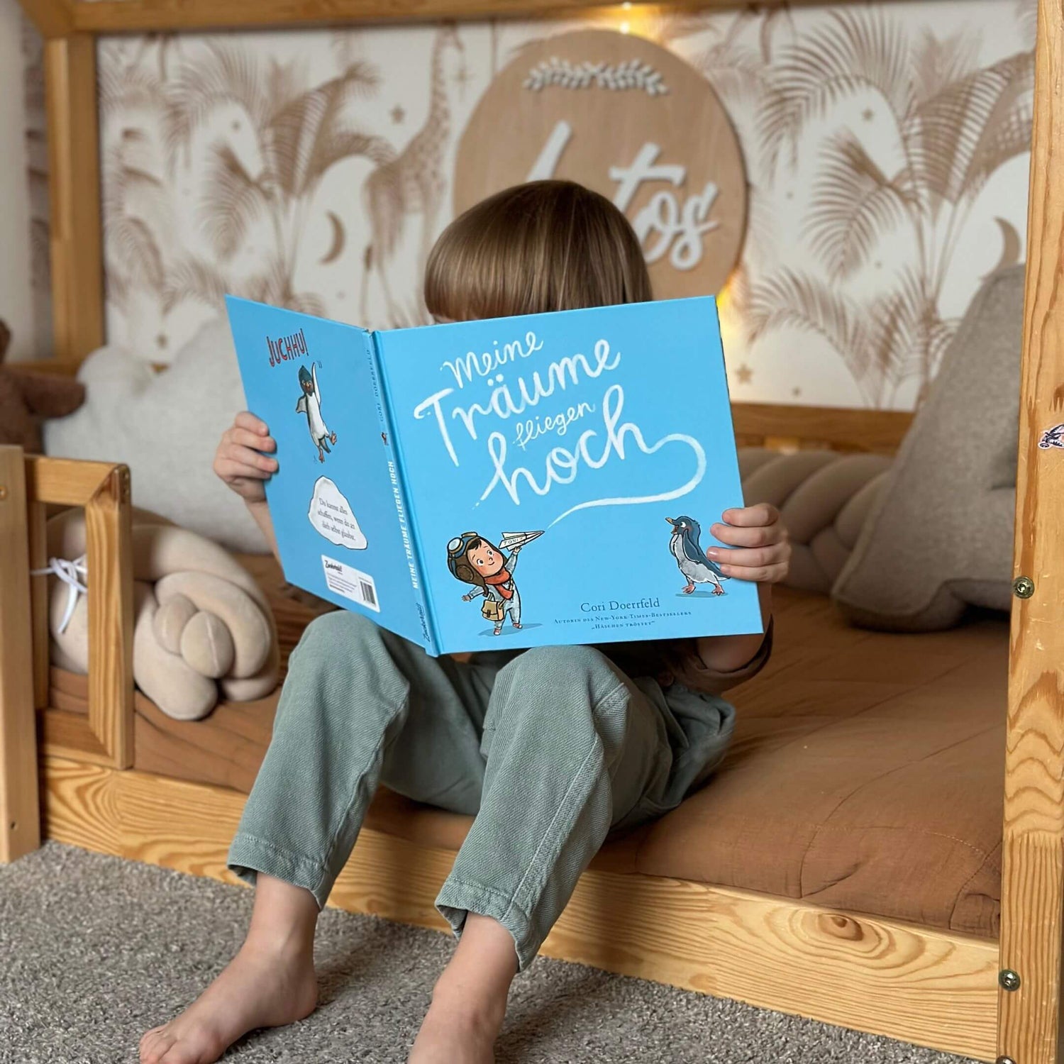 „Meine Träume fliegen hoch“ ist ein Bilderbuch, das schon kleinste Kinder anspricht: Die freundlichen Illustrationen und die klare Botschaft machen dieses Buch perfekt für Kinder ab Kita-Alter.